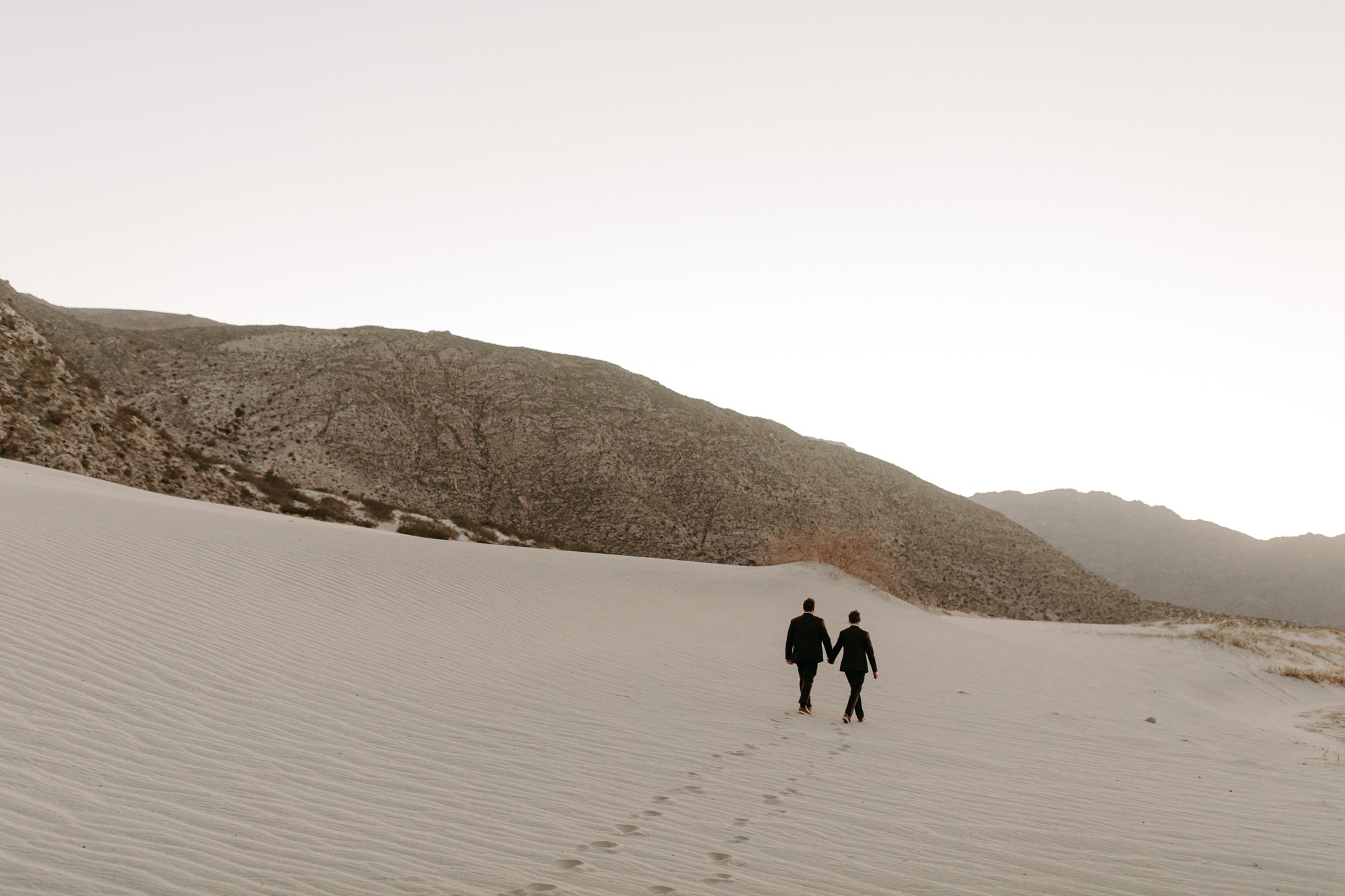 On the way back to Palm Springs, I chatted with the newlyweds about all things love and marriage, making me feel like I had known them for a lifetime. With the infamous sand dunes of southern California too far away, I found a small dune with mountain views for us to stop at on our way back to the city. One last quiet moment in the desert, i and Brad still glowing from their ceremony and from the golden hour hues brought to us by the setting sun. There is just something about a sunset in the desert, yeah?