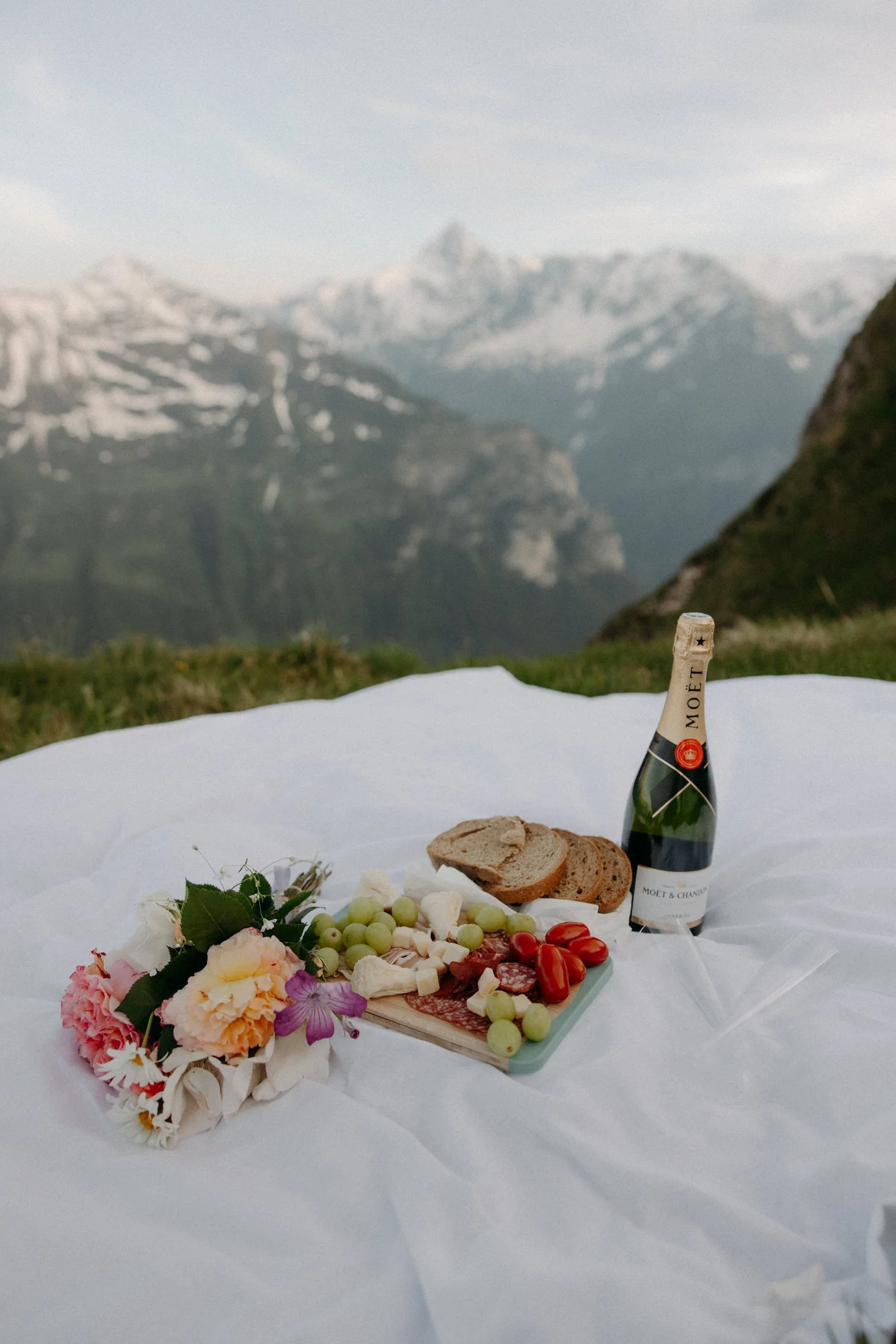 Searching for the best chance for privacy, they researched and found a dreamy spot on the top of a mountain near a gondola. In Switzerland, while the gondolas and trains make many beautiful spots accessible, they also attract crowds. But in this case, the gondolas had yet to open for the season, requiring a hike to reach the top and as a result, hopefully, fewer people.